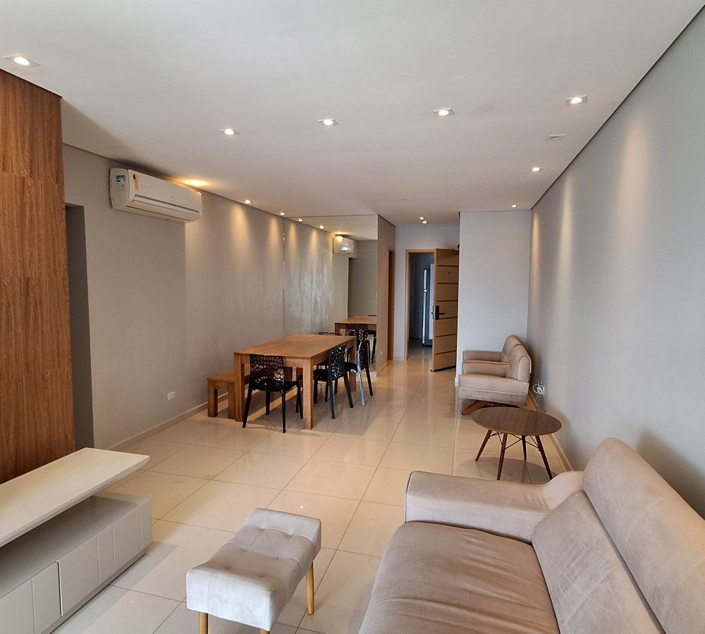 Apartamento alto padrão para locação, Santos/SP, Boqueirão. Mobiliado, quatro suítes com armários planejados, varanda, ar condicionado, sala para três ambientes com varanda gourmet, cozinha planejada, lavabo, dependência de empregada, área técnica, área de serviço com armários, três vagas de garagem demarcadas, depósito individualizado, 244 m2 área útil. Prédio com lazer completo: Bar lounge, brinquedoteca, cinema, espaço grill, academia, sala de jogos, piscina adulto e infantil, playground, quadra squash, quadra poliesportiva, salão de festas, sauna, espaço office e muito mais.