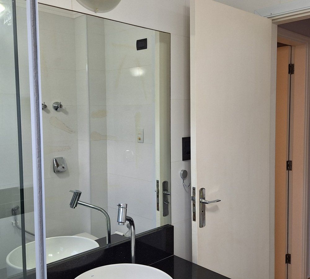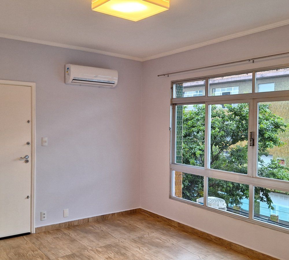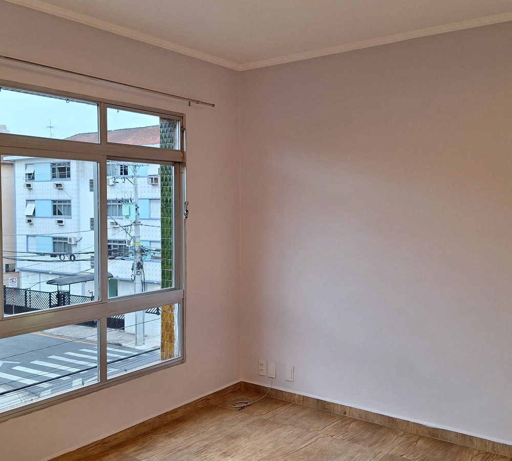 Apartamento para locação, Embaré, Santos - SP. Garagem fechada, dois dormitórios com armários, ar condicionado e ventilador de teto, sala ampla com ar condicionado de frente, cozinha com armários e gabinete, área de serviço ampla com entrada independente, banheiro de serviço, banheiro social com box e gabinete em granito preto. Prédio de três andares. Valor do pacote R$ 3.100,00, aceita depósito caução de três meses ou seguro fiança, entre em contato pelo whatsapp (13) 98149 8447.