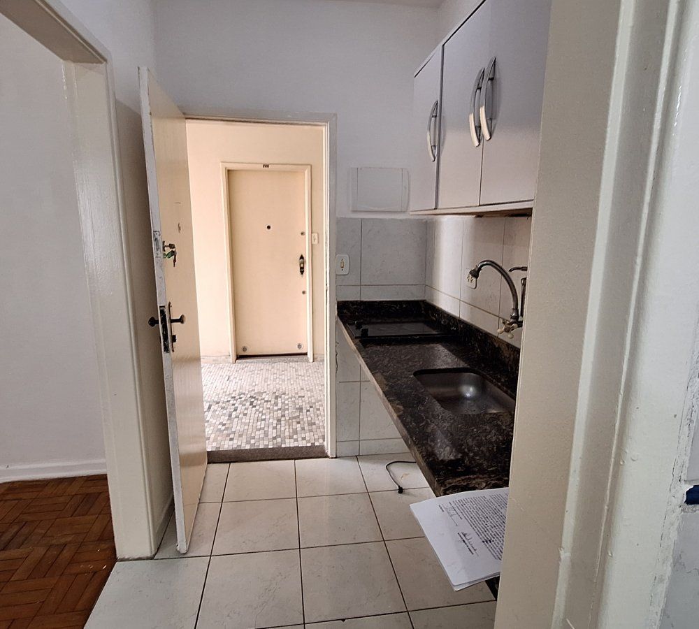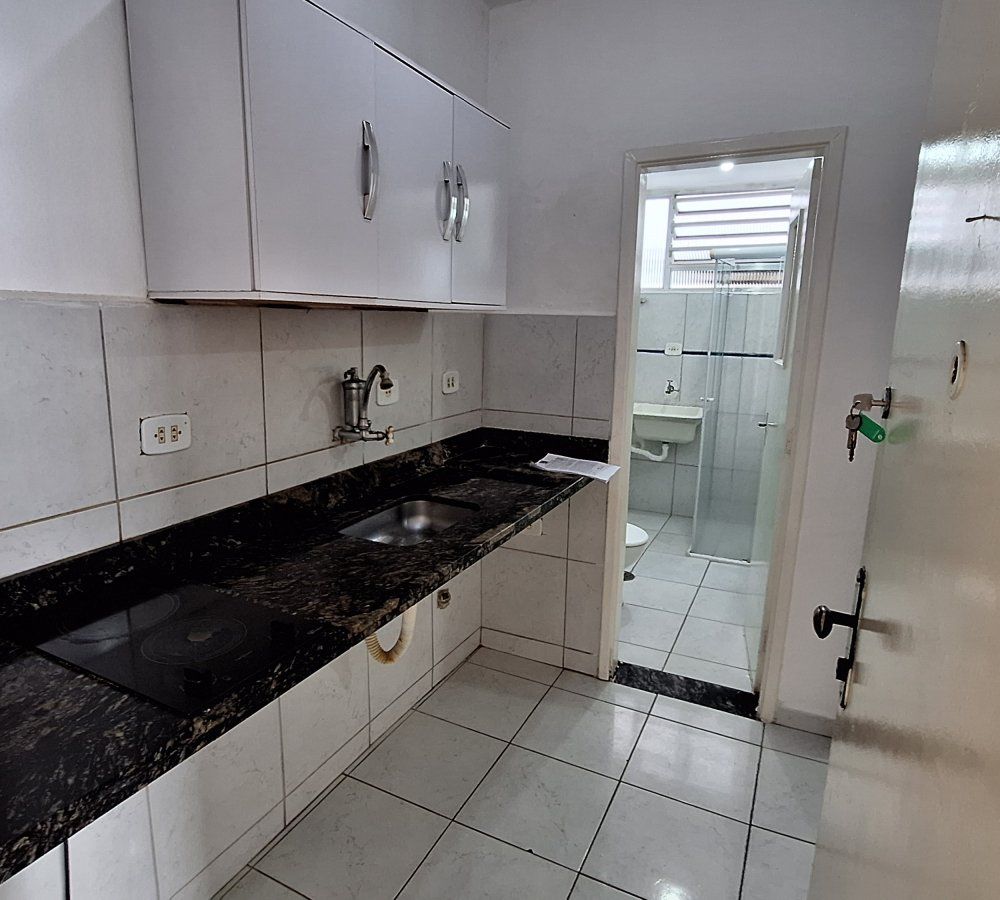 Oportunidade - Apartamento para locação, Santos/SP, Embaré. Kit contendo living, cozinha com armário e fogão elétrico, banheiro com box blindex e gabinete, local para máquina de lavar, prédio com elevador, portaria 24 horas, bicicletário e vaga coletiva para moto, em frente à praia, próximo ao Shopping Praiamar e ao SESC.