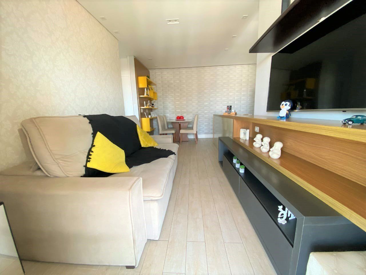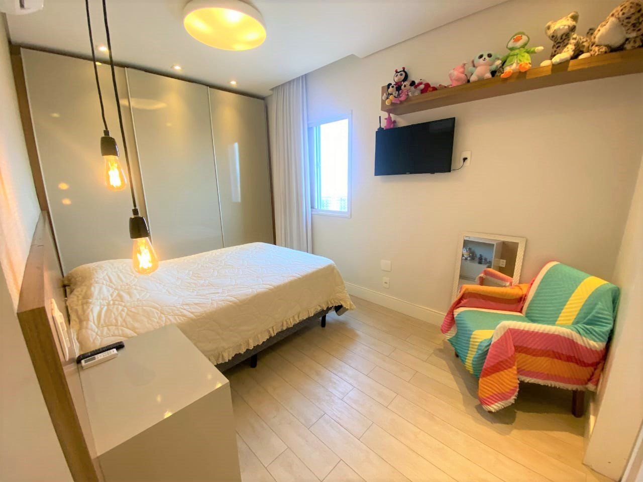 Apartamento possui 2 dormitórios, sala com 2 ambientes, terraço gourmet, churrasqueira a carvão, vista panorâmica, cozinha conceito, ar- condicionado em todos os ambientes, repleto de móveis planejados e um lindíssimo projeto de iluminação.