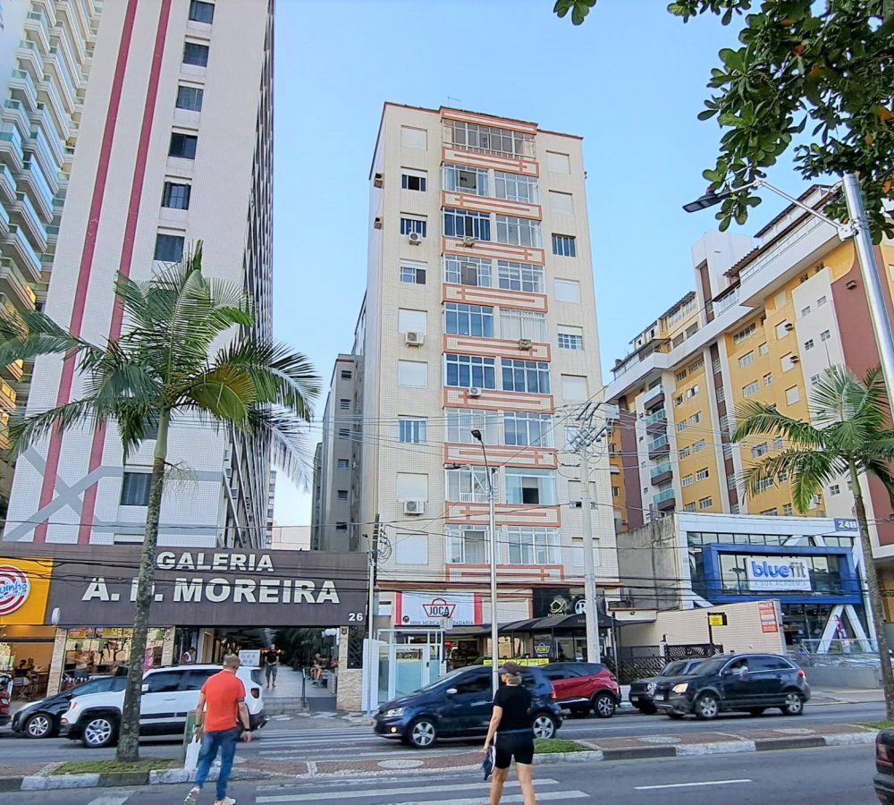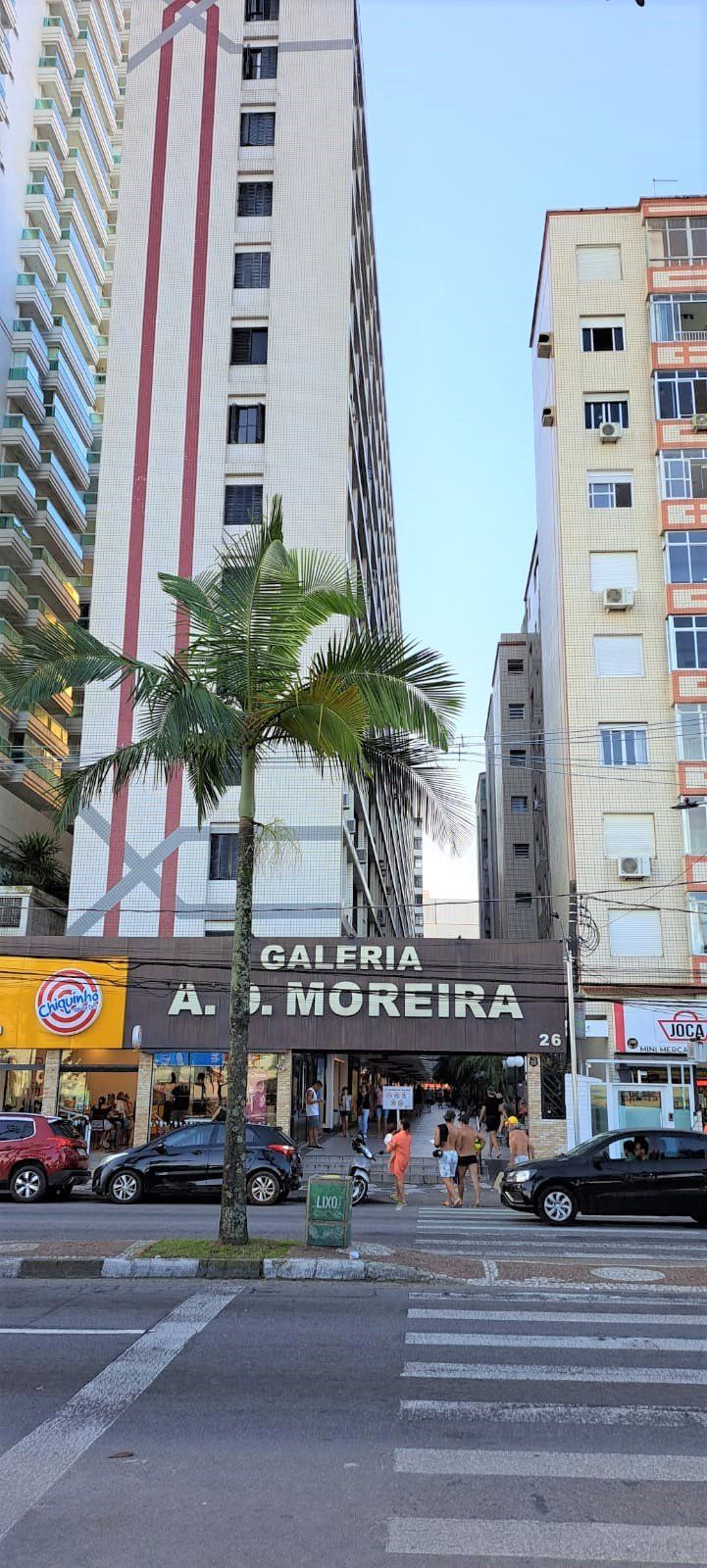 Edifício AD Moreira com opções de lojas, variedades de comércios, shopping Miramar, coração do gonzaga e a orla da praia de Santos.