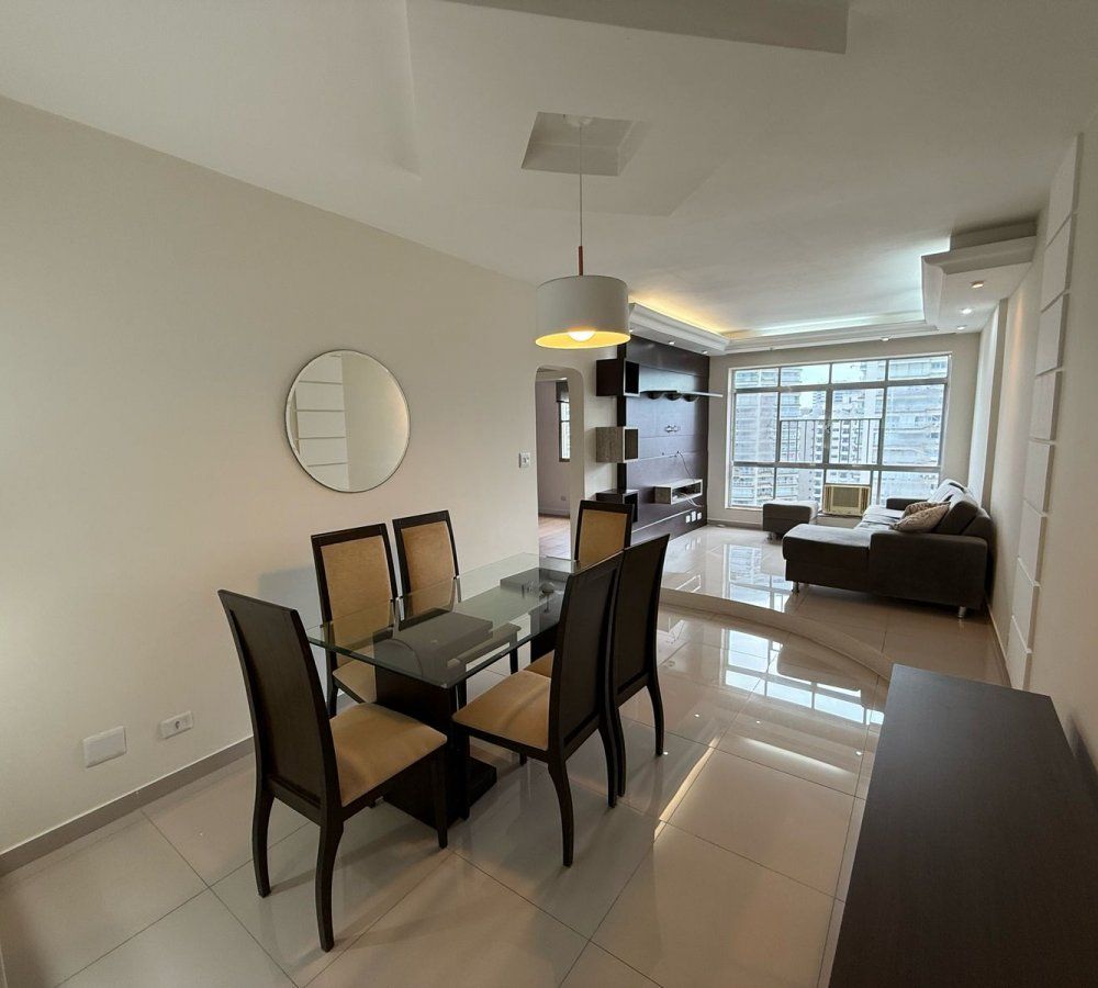 Excelente apartamento Semi Mobiliado para Locação em andar alto com uma linda vista para o mar, contendo 2 dormitórios com armários planejados, sendo 1 suíte, sala para 2 ambientes, lavabo, cozinha ampla com armários planejados, área de serviço e wc de serviço, 1 vaga de garagem coletiva suficiente, prédio com portaria 24hs e câmeras de segurança, ótima localização na Ponta da Praia, com vários comércios ao redor.