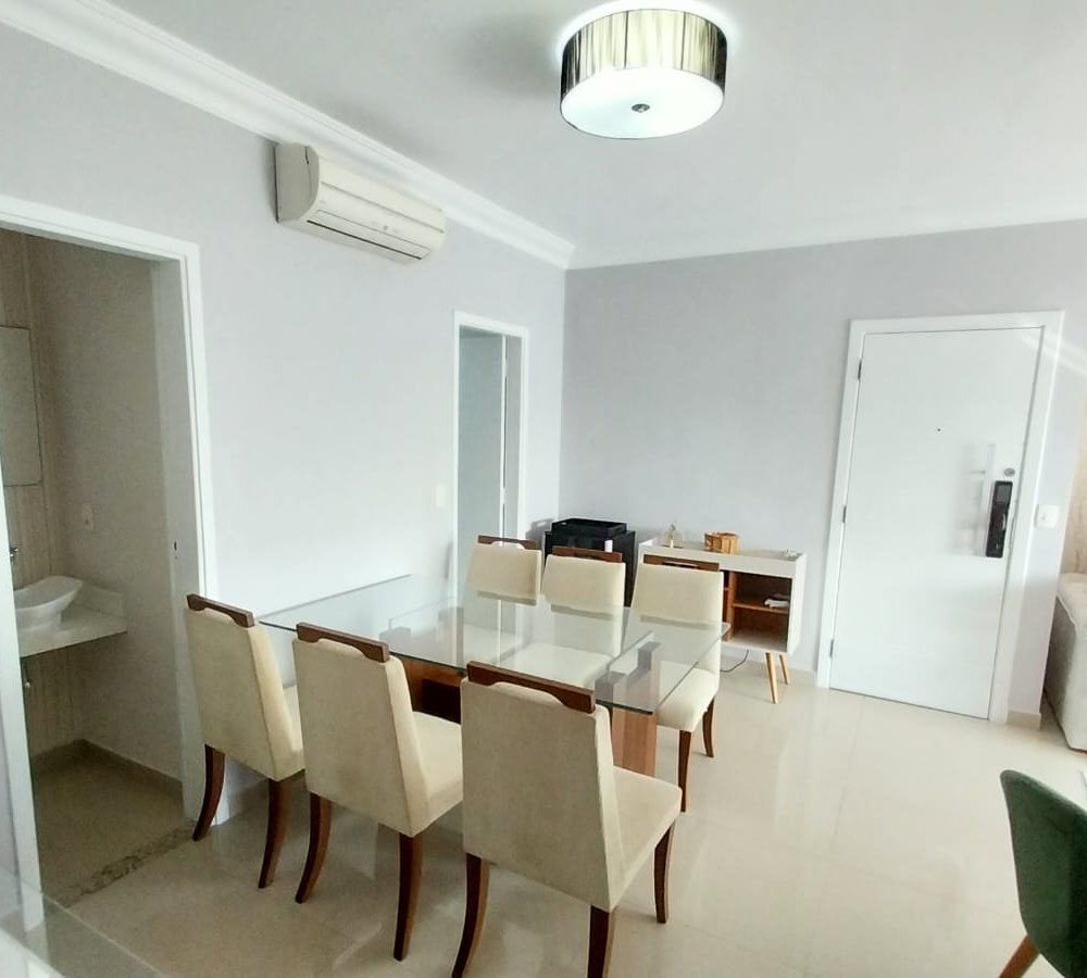 - Sala 2 ambientes com varanda gourmet, lavabo, andar alto com vista mar, piso em porcelanato, cozinha planejada, área de serviço, wc de serviço, ar condicionado em todos os dormitórios e na sala, 3 vagas de garagem demarcadas, depósito privativo, prédio com lazer completo (piscina, academia, salão de festas, sauna, jacuzzi, brinquedoteca, quadra poliesportiva, pilates, squash e muito mais..).